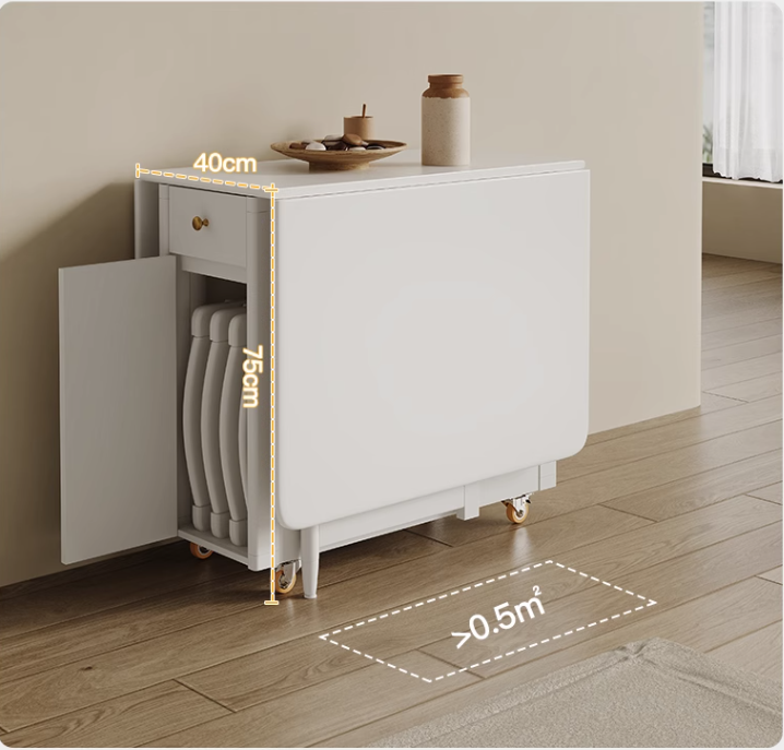 - Drop Leaf to expand table size | Chairs tuck neatly under the table