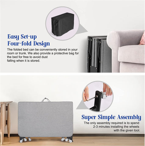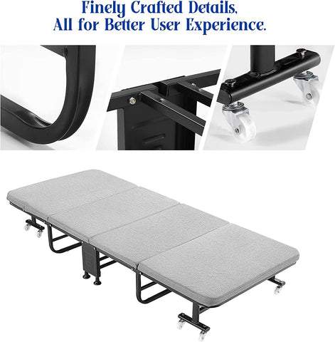 - Practical and convenient: This folding single bed does not need to be installed, it is easy and quick to use, the head can be adjusted at multiple angles, free to switch, multi-angle selection, reading, leisure, nap, free switching, 360° silent universal wheels at the bottom, Scroll smoothly and move freely