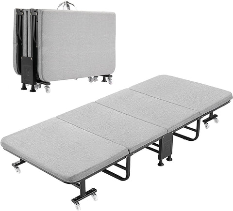- Stable frame & well material - This portable foldable bed builds with high-quality square steel tubing, horn-shaped feet in the middle and T-shaped support feet at the four corners, and a sturdy metal frame that’s reinforced to ensure stability during use. The sponge mat of the folding bed is soft and thick. The surface is made of cotton and linen fabric, which is refreshing and breathable, resistant to dirt and wear, breathable and moisture absorption