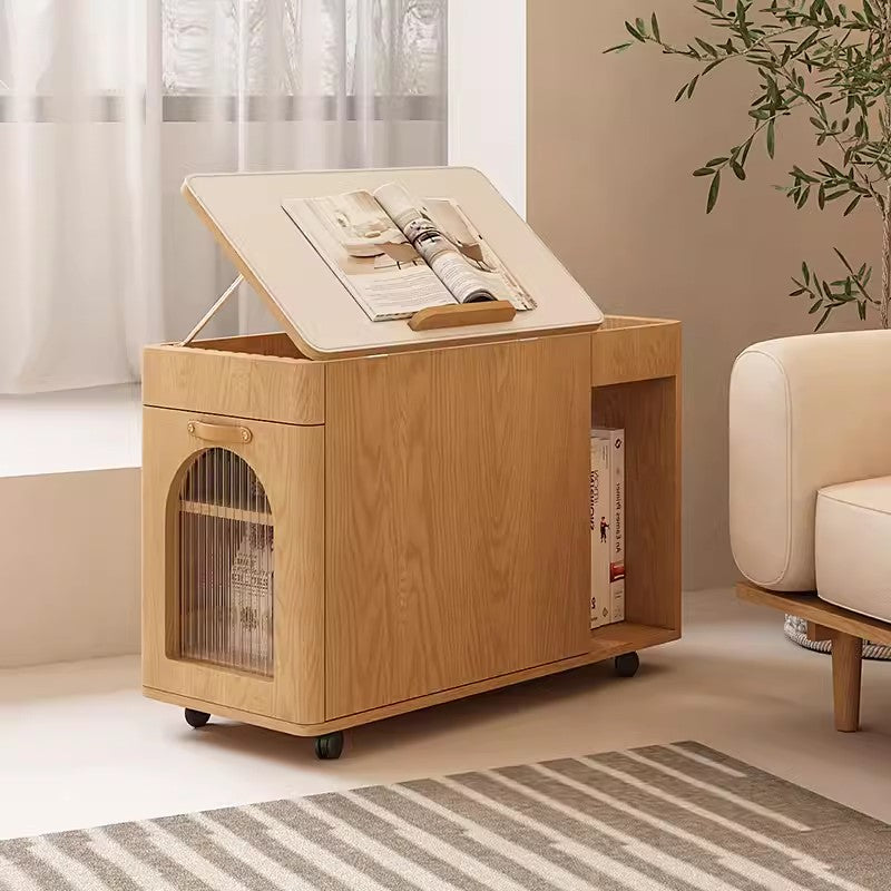 Multifunction End Table with Adjustable Tabletop and Universal Wheels