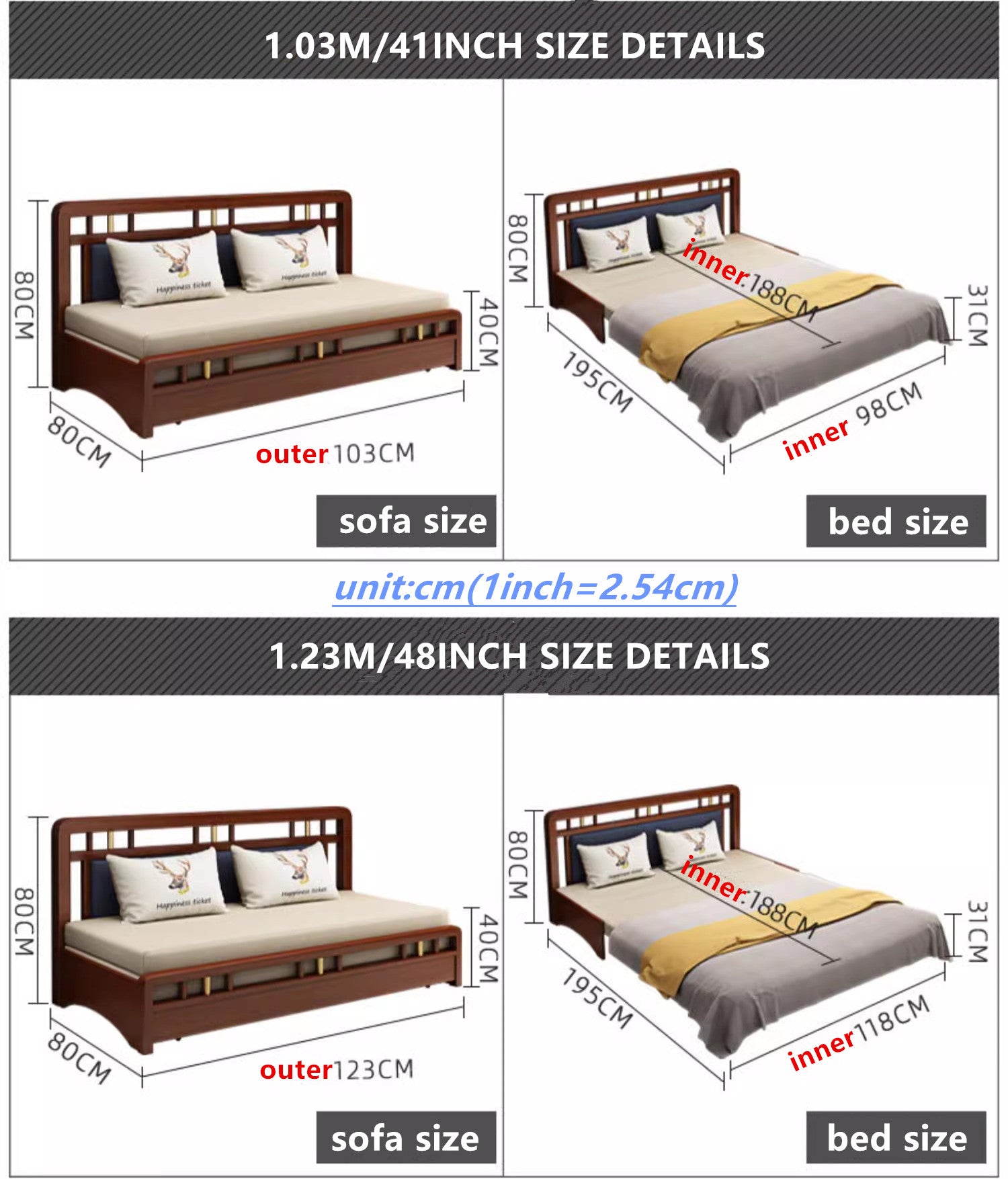 Solid Wood Frame Pull Out Sleeper Sofa Bed with Underneath Storage